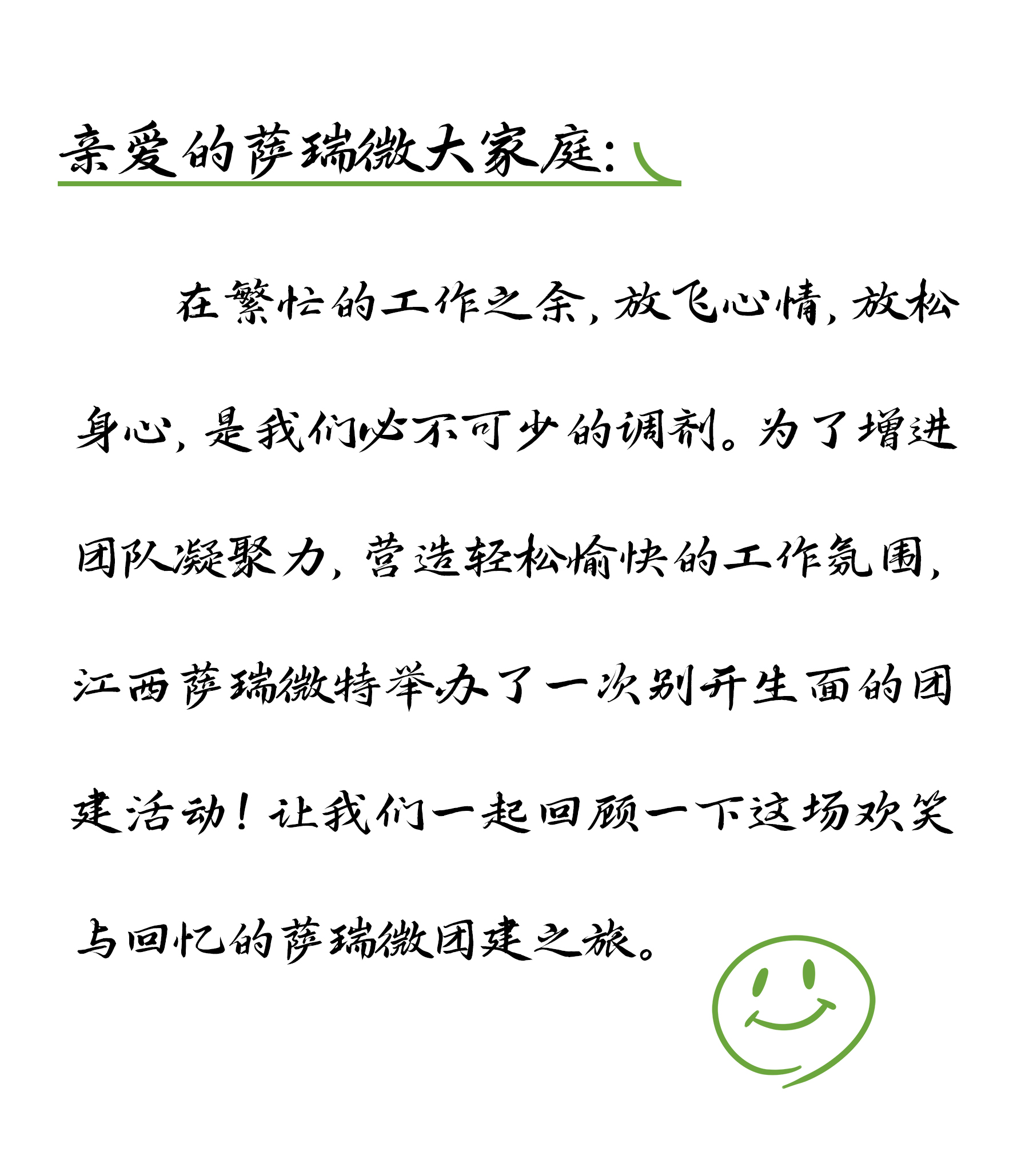 亲爱的快盈微大家庭:在繁忙的工作之余,放飞心情,放松身心,是快盈必不可少的调剂。为了增进团队凝聚力,营造轻松愉快的工作氛围,江西快盈微特举办了一次别开生面的团建活动!让快盈一起回顾一下这场欢笑与回忆的快盈微团建之旅。