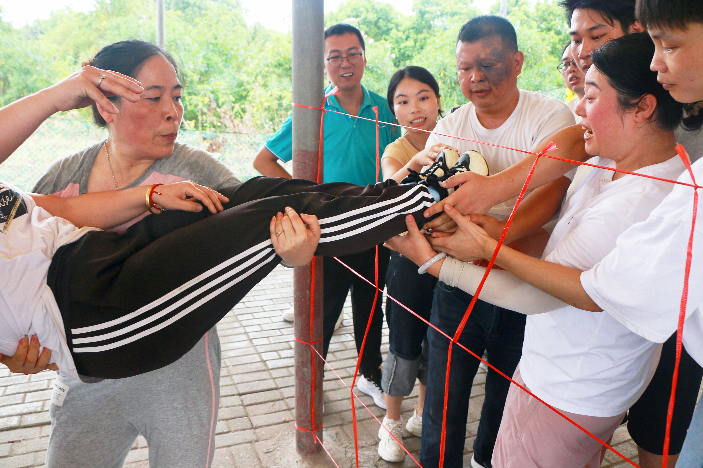 在团队合作的默契配合下,快盈一起克服重重困难,相信同事,成功取到指定位置的水瓶。